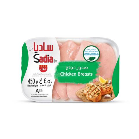 اشتري ساديا أنصاف صدور دجاج مجمدة بدون عظم وبدون جلد 450غ
